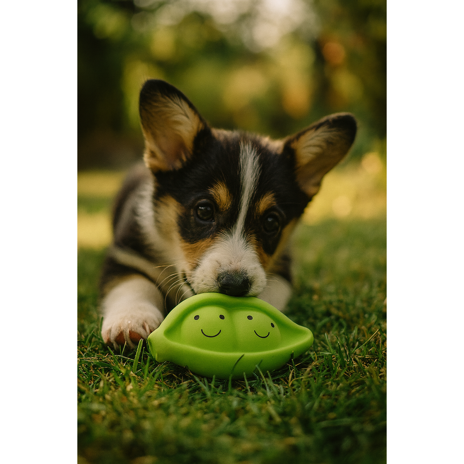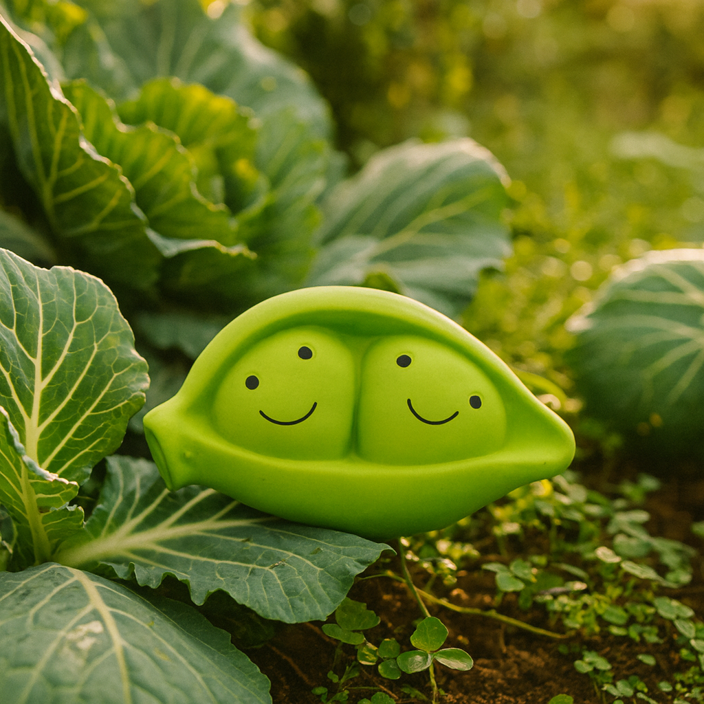 In a quiet corner of the garden, Pico waits - two peas tucked neatly in their pod.